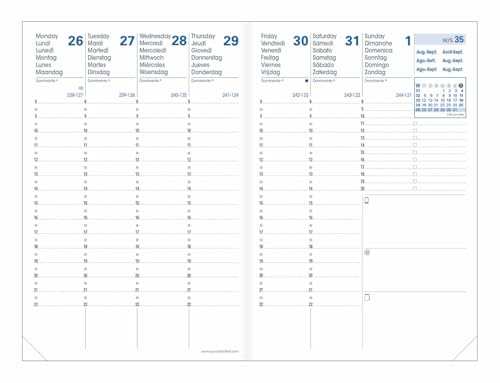 Quo Vadis - Agenda 16 mois - 2025-2026 - Plan Week - Semainier Planning - Multilingue - Billy - Bleu - 16 mois de septembre à décembre - 16x24 cm - Papier Clairefontaine blanc - Fabrication française