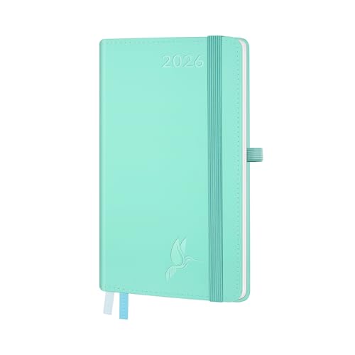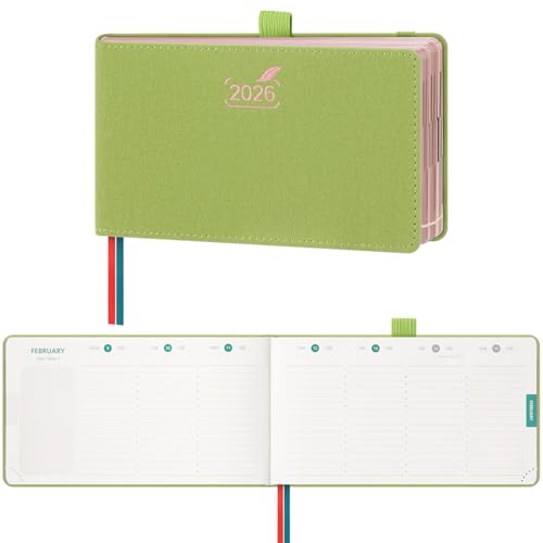 FEKSINO Agenda De poche 2026 Semainier 18 x 9,8 cm-12 mois (janvier 2026-décembre 2026),1 semaine sur 2 pages,Couverture Souple en PU Cuir, Papier 100 g/m²,Menthe vert