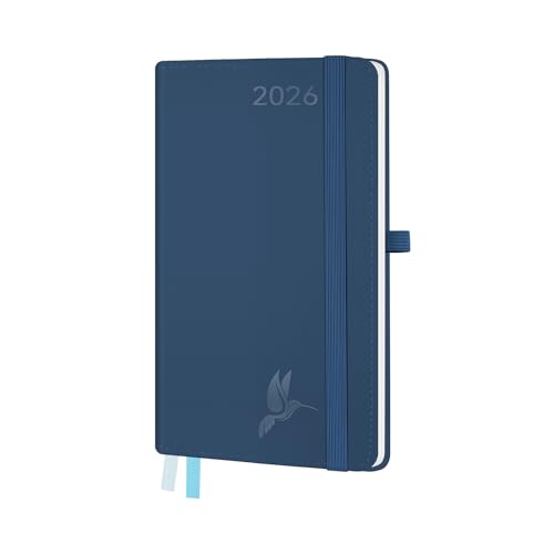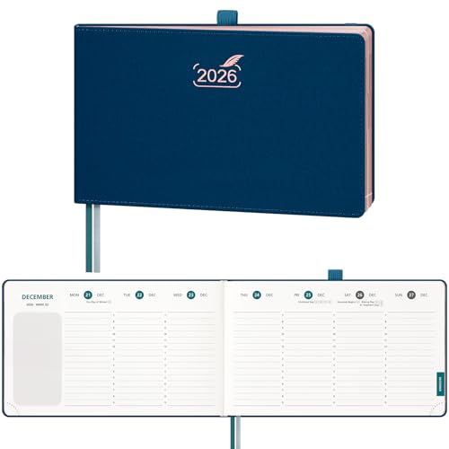 BEZEND Agenda 2026 Semainier de Poche 9 x 16,5 cm Vertical 1 Semaine 2 Pages avec Rose Gold Bord de Papier - Couverture Rigide en PU, Bleu Hollandais