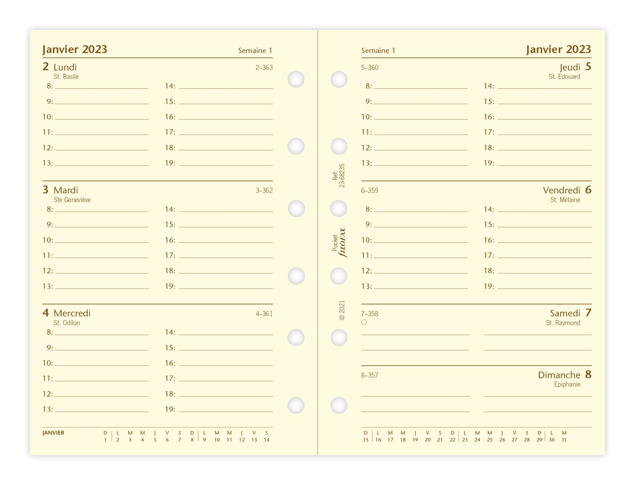 Recharge agenda civil semaine/2 pages 2023 - 8,1 x 12 cm - Filofax - Crème