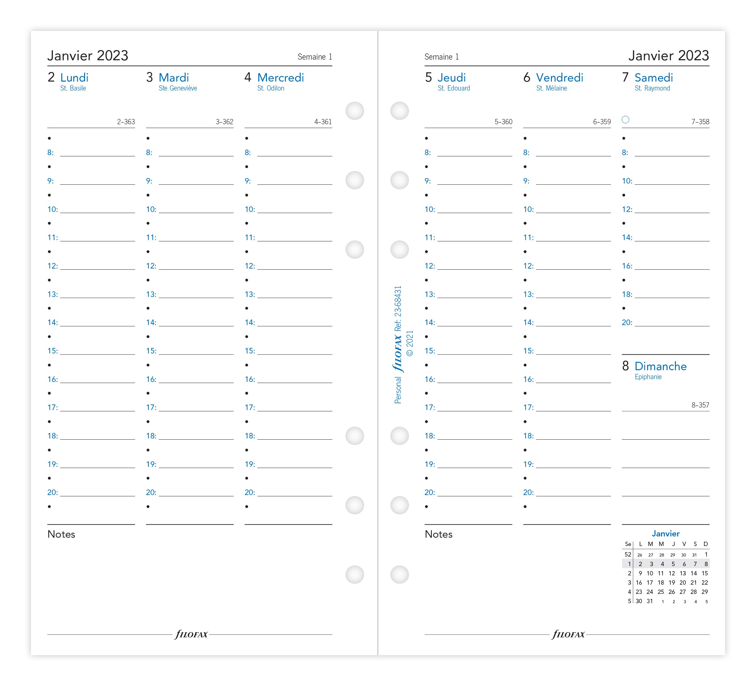 Recharge agenda civil semaine/2 pages 2023 - 8,1 x 12 cm - Filofax - Blanc