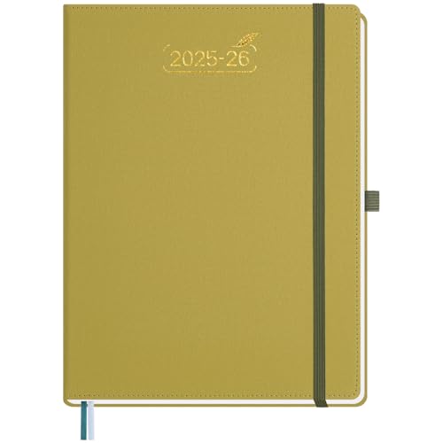 BEZEND Agenda 2026 A4 28 x 22 cm Agenda Semainier 2026 avec Double Horaire 1 Semaine 2 Pages | 18 Mois Du juil. 25 à déc. 26 | Couverture Rigide en Cuir PU - Moutarde