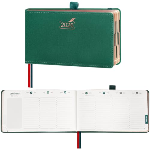 BEZEND Agenda 2026 Semainier de Poche 9 x 16,5 cm Vertical 1 Semaine 2 Pages avec Rose Gold Bord de Papier - Couverture Rigide en PU, Vert Forêt