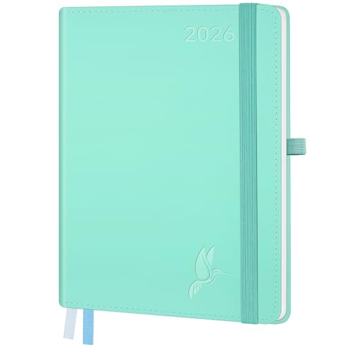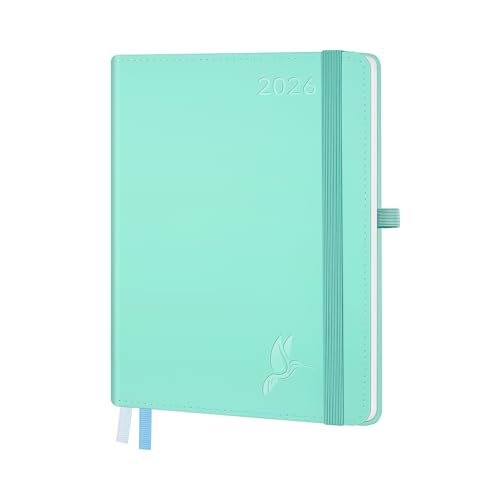 FEKSINO Agenda Semainier 2026 - Format A5 21,3 x 14,6 cm - 12 mois (janvier 2026-décembre 2026),1 semaine sur 2 pages,Couverture Souple en PU Cuir, Papier 100 g/m², Menthe vert