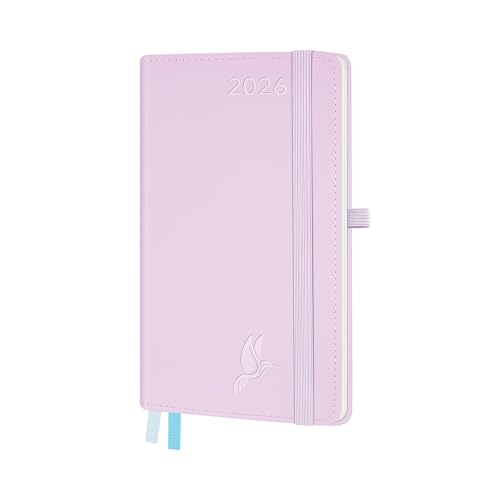 FEKSINO Agenda De poche 2026 Semainier 18 x 9,8 cm-12 mois (janvier 2026-décembre 2026),1 semaine sur 2 pages,Couverture Souple en PU Cuir, Papier 100 g/m²,Rose