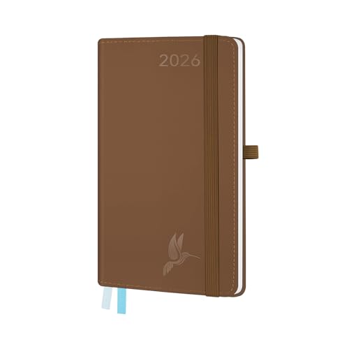 FEKSINO Agenda De poche 2026 Semainier 18 x 9,8 cm-12 mois (janvier 2026-décembre 2026),1 semaine sur 2 pages,Couverture Souple en PU Cuir, Papier 100 g/m²,Marron