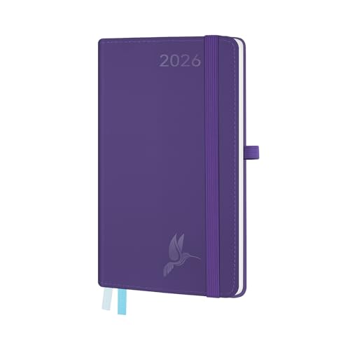 FEKSINO Agenda Semainier 2026 - Format A5 21,3 x 14,6 cm - 12 mois (janvier 2026-décembre 2026),1 semaine sur 2 pages,Couverture Souple en PU Cuir, Papier 100 g/m², Pourpre