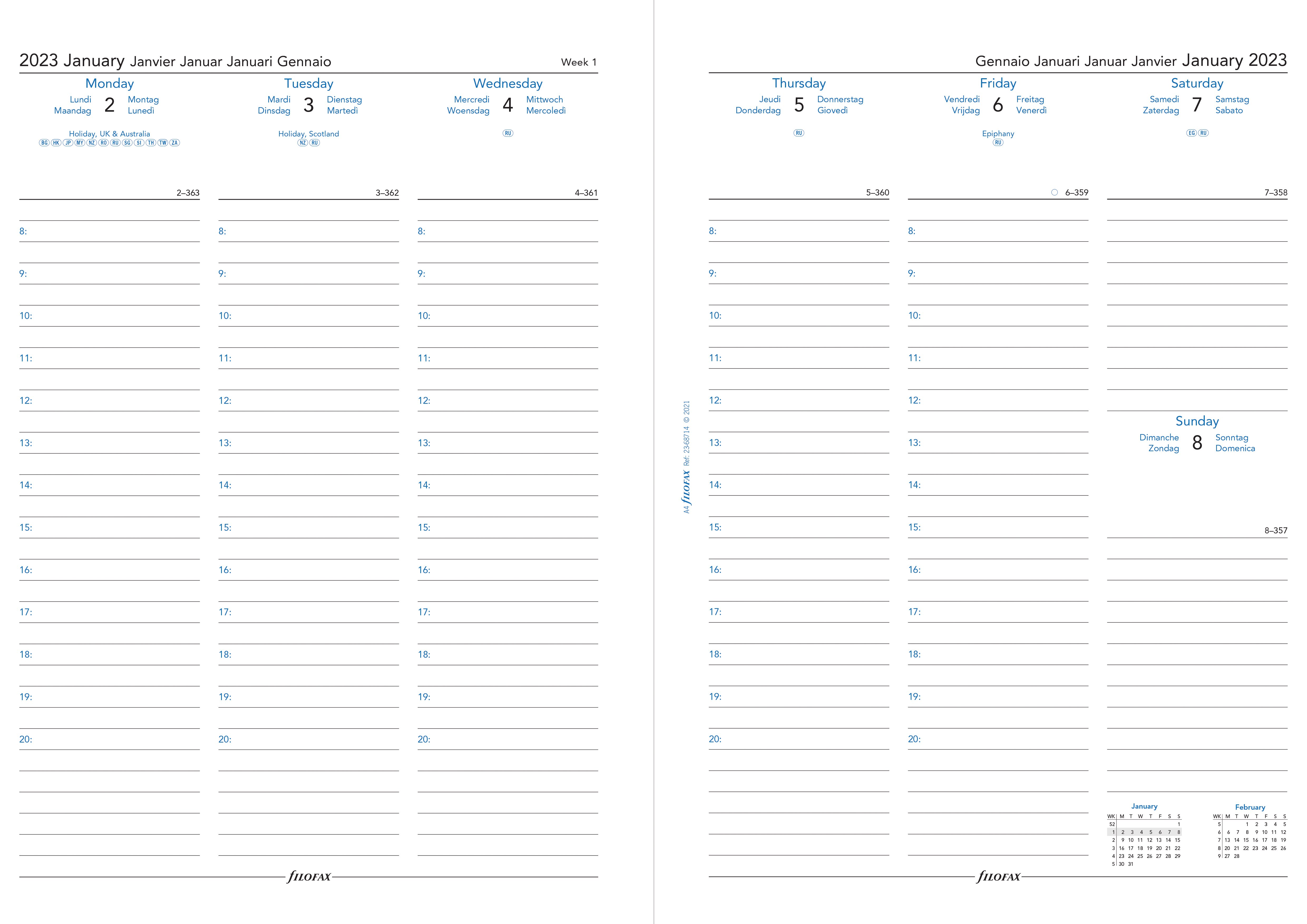 Recharge agenda civil semaine/2 pages 2023 - 21 x 29,7 cm - Filofax - Blanc