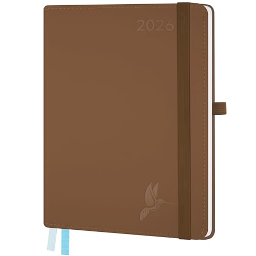 FEKSINO Agenda Semainier 2026 - Format A5 21,3 x 14,6 cm - 12 mois (janvier 2026-décembre 2026),1 semaine sur 2 pages,Couverture Souple en PU Cuir, Papier 100 g/m², Marron