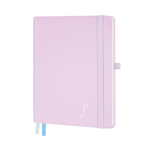 FEKSINO Agenda Semainier 2026 - Format A5 21,3 x 14,6 cm - 12 mois (janvier 2026-décembre 2026),1 semaine sur 2 pages,Couverture Souple en PU Cuir, Papier 100 g/m², Rose