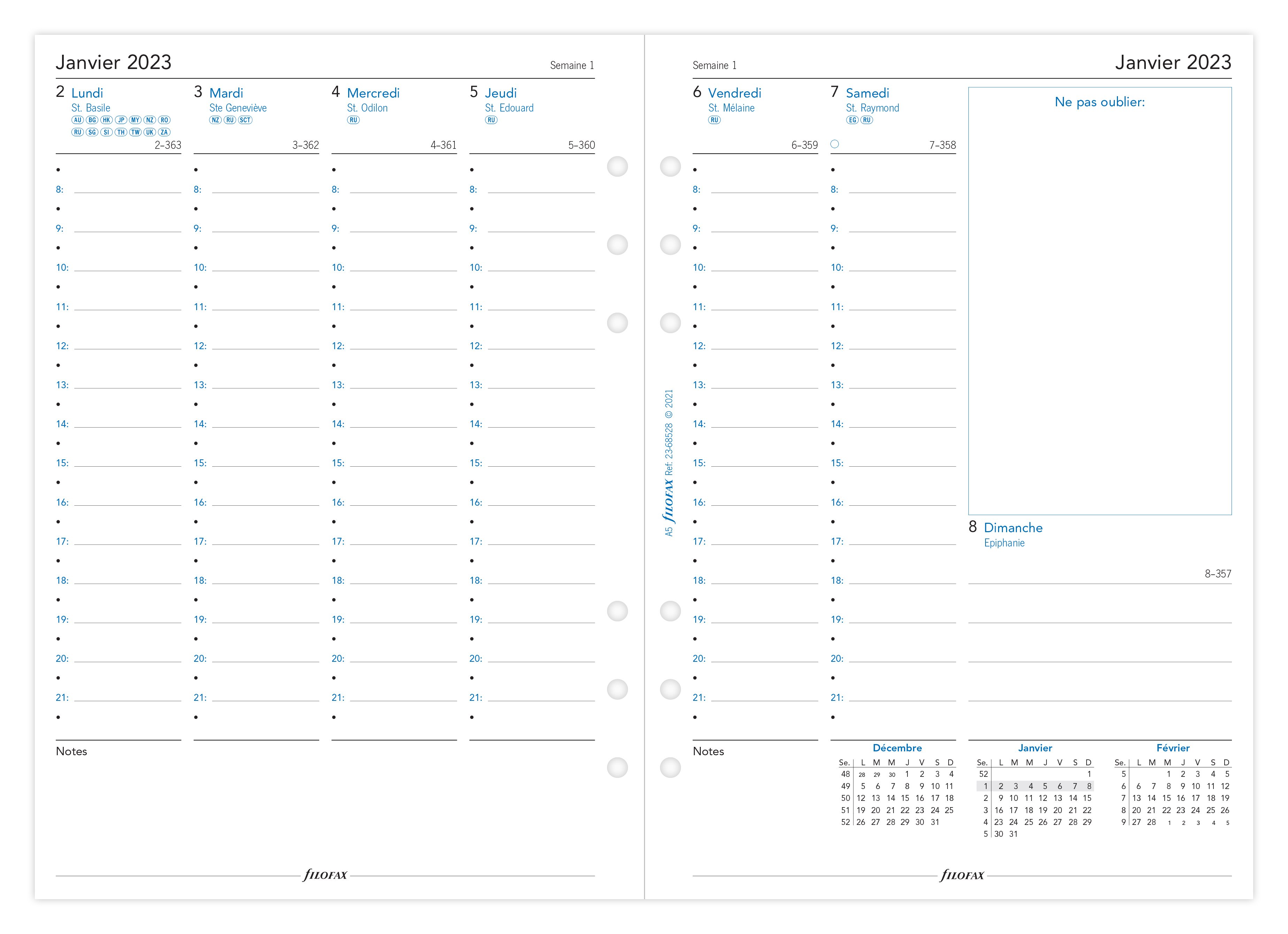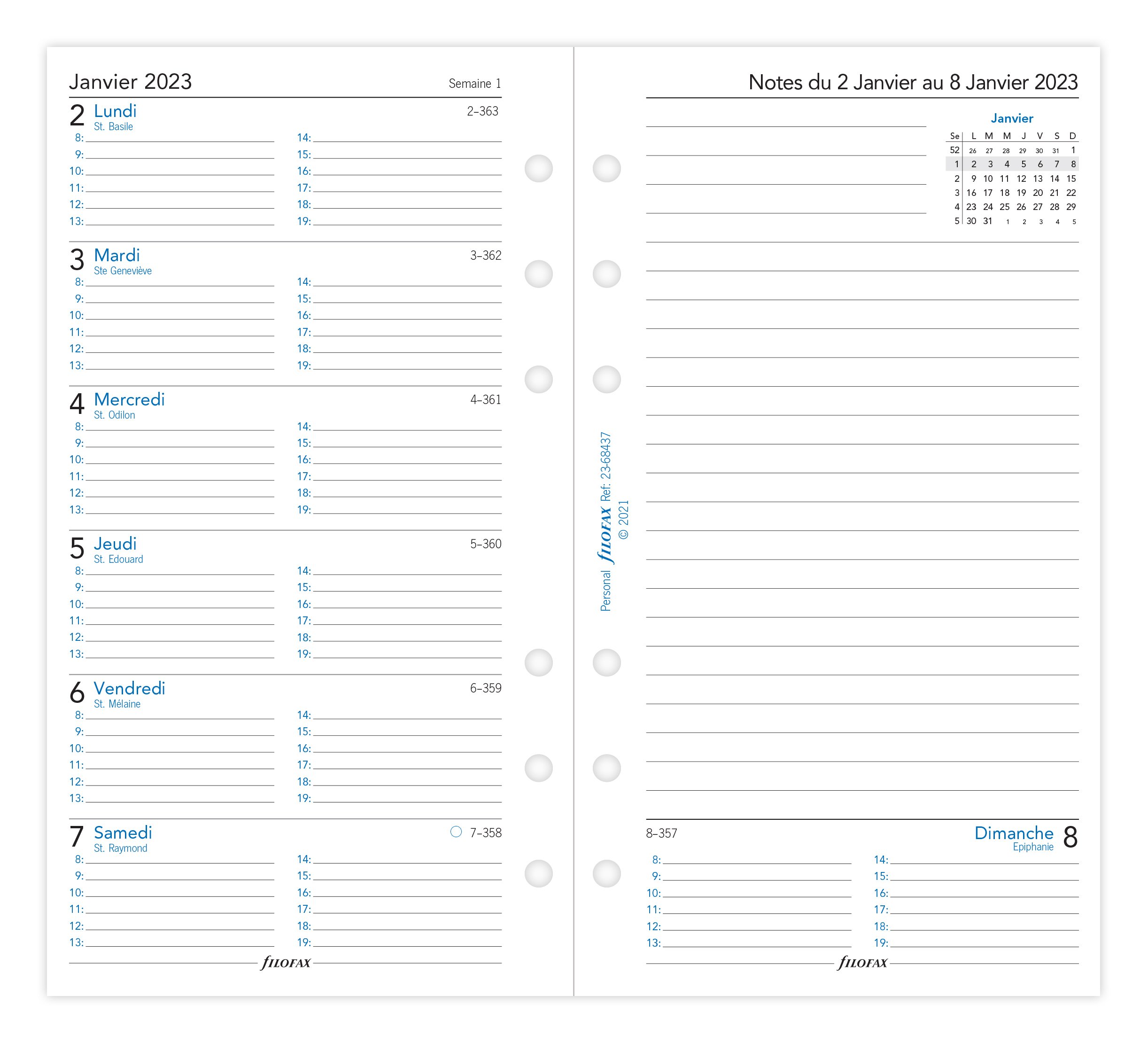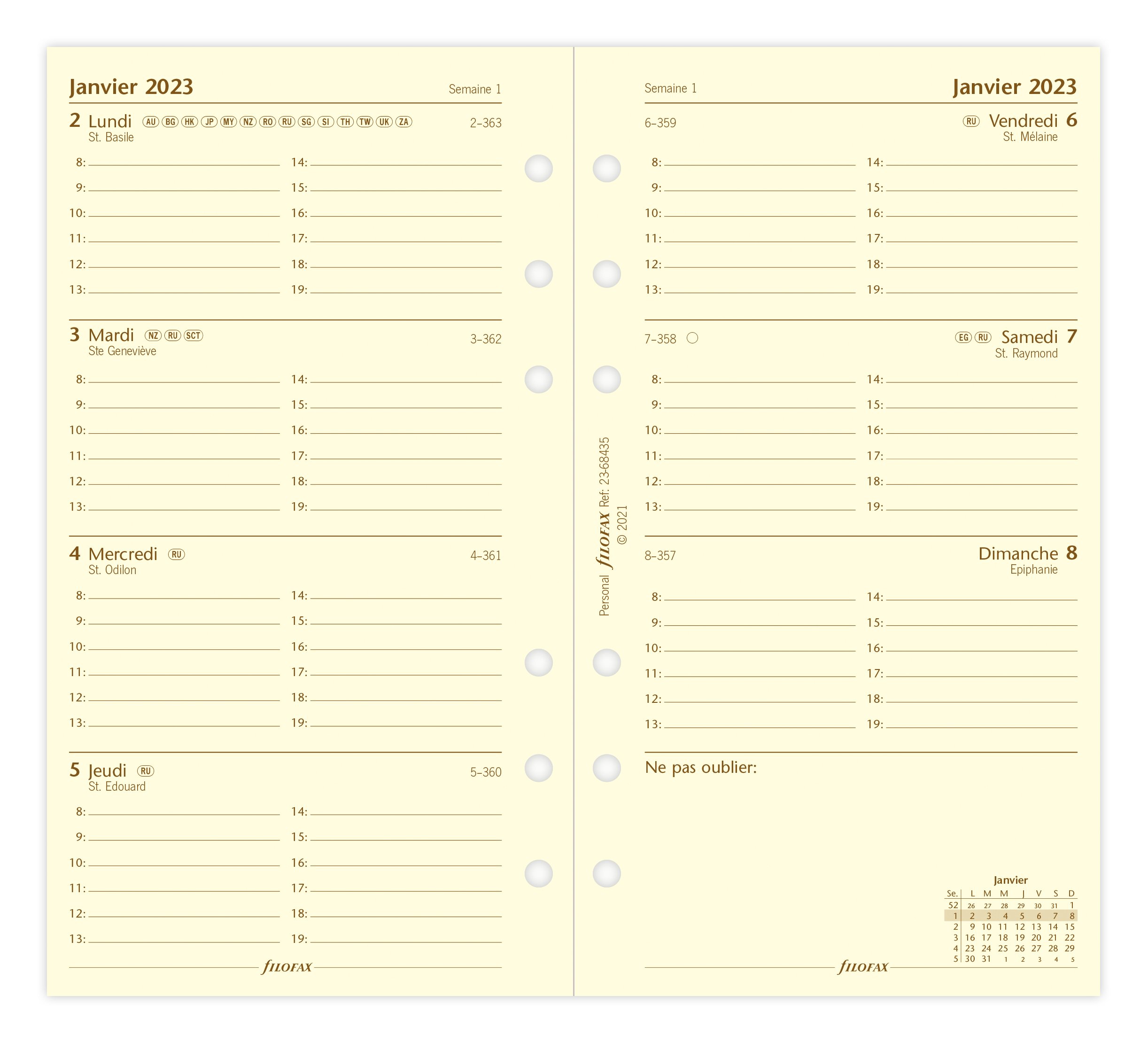 Recharge agenda civil semaine/2 pages 2023 - 14,8 x 21 cm - Filofax - Blanc