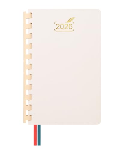 Agenda semainier vertical 2026 A5 – Vue semaine Janv.–Déc. – Couverture souple en simili cuir – Avec stylo, marque-pages et pochette – Idéal femmes, étudiants, bureau, maison ou famille