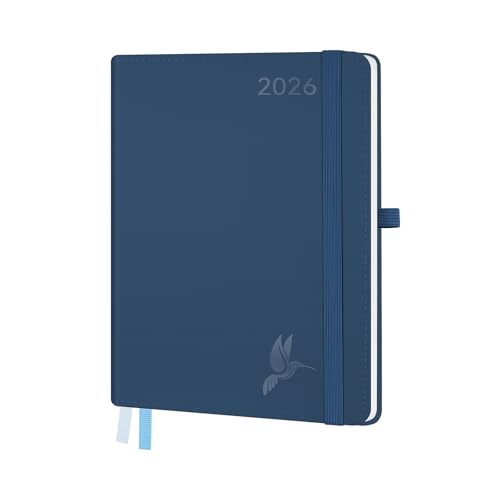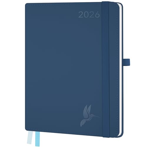 FEKSINO Agenda Semainier 2026 - Format A4-28,6 x 21 cm - 12 mois (janvier 2026-décembre 2026),1 semaine sur 2 pages,Couverture Souple en PU Cuir, Papier 100 g/m², Bleu