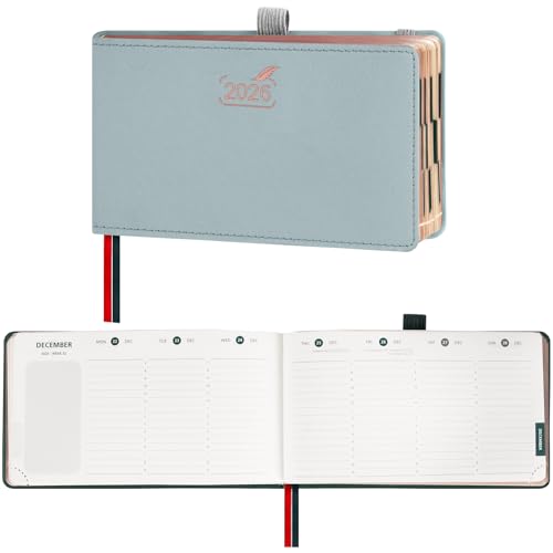 FEKSINO Agenda De poche 2026 Semainier 18 x 9,8 cm-12 mois (janvier 2026-décembre 2026),1 semaine sur 2 pages,Couverture Souple en PU Cuir, Papier 100 g/m²,Bleu