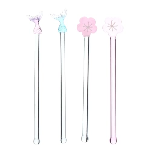 Luxshiny Lot de 4 Baguettes à Cocktail en Verre Coloré, Agitateur à Café et Bâtonnet Mélangeur Allongé, pour Bar, Café et Préparation de Boissons Estivales Réutilisable Couleur Aléatoire