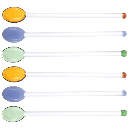 IMIKEYA 6 Pièces en Verre Cuillère en Coloré Cuillère en Long Manche Café Agitateur en Verre Cocktail Agitateur Home Bar Accessoire