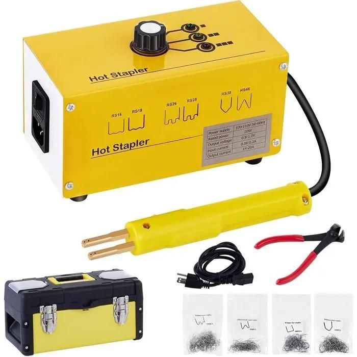 Kit de Soudure Plastique 230V pour Réparation de Pare-Chocs de VoitureAgrafeuse à Chaud avec 600 Agrafes Agrafe Thermique 821