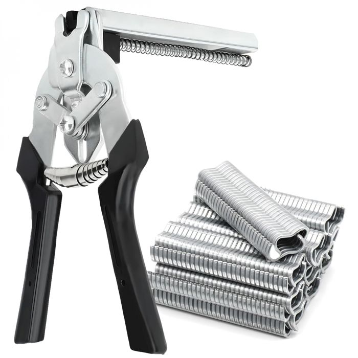 Pince à agrafes rapides pour grillage clôture + 1200 agrafes - Gris - Linxor