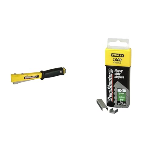 Stanley 6-Pht150 marteau Agrafeur Ht150C pour Agrafes de Type G - Utilisation Courante - Poids de Frappe optimal - Poignée Ergonomique & 1-TRA705T Agrafe 8 mm Type G Boîte 1000 pièces