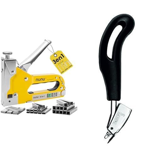 Agrafeuse manuelle 3-en-1 - Rapid NUNU, Murale pour Bois, Bricolage, pour Tapisserie, Tissus, agrafeuse Câbles, Puissance Réglable et Ergonomique, Avec 3 000 Agrafes et Clous + Ôte agrafes - (5001728)