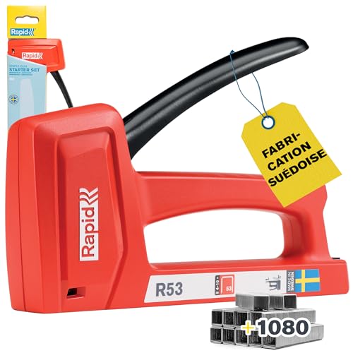 RAPID R53 - Kit Agrafeuse Murale Manuelle pour Travaux Légers, Agrafeuse à Bois, Agrafeuse Tapissierie, Poignée Ergonomique & Pièces d'Usure en Acier, Fabriquée en Suède, Inclus 1080 Agrafes (5001747)