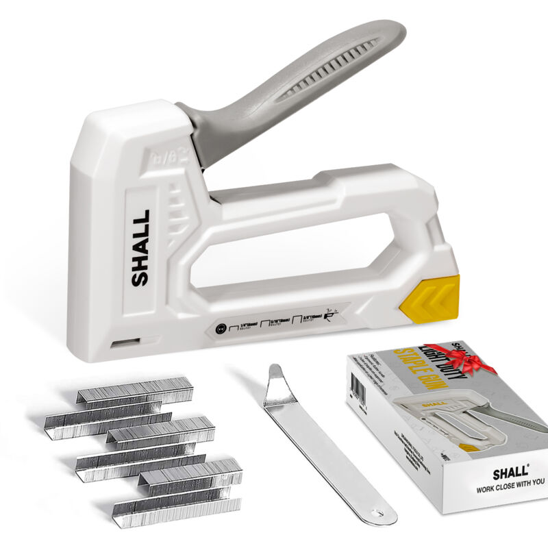 Shall - Agrafeuse-Cloueuse à Main Légère (Blanc) pour Bois & Tissu - 1600 Agrafes JT21 (6mm, 8mm, 10mm) + Extracteur - Idéale Bricolage, Décoration,