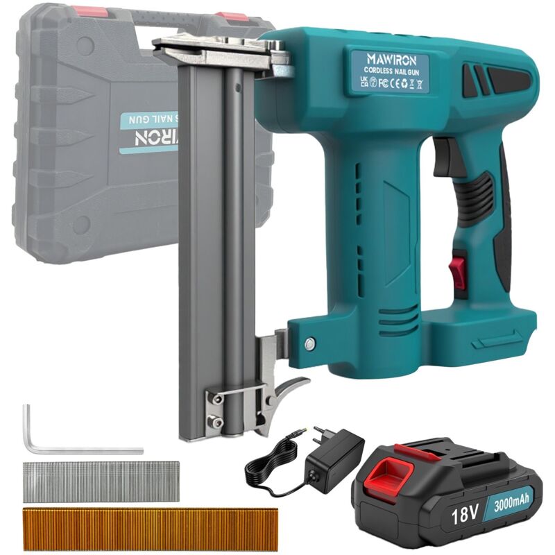 Cloueuse sans fil compatible avec batterie 18 V, cloueuse/agrafeuse 2 en 1 avec 1000 clous pour le travail du bois et le rembourrage.