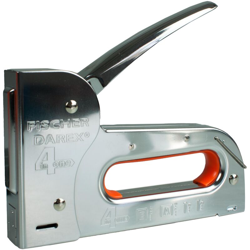 Fischer Darex – Agrafeuse-cloueuse manuelle métal 4 en 1 – Compatible agrafes 8/10/12mm – Ergonomique avec chargement rapide – Pour bois dur et teck