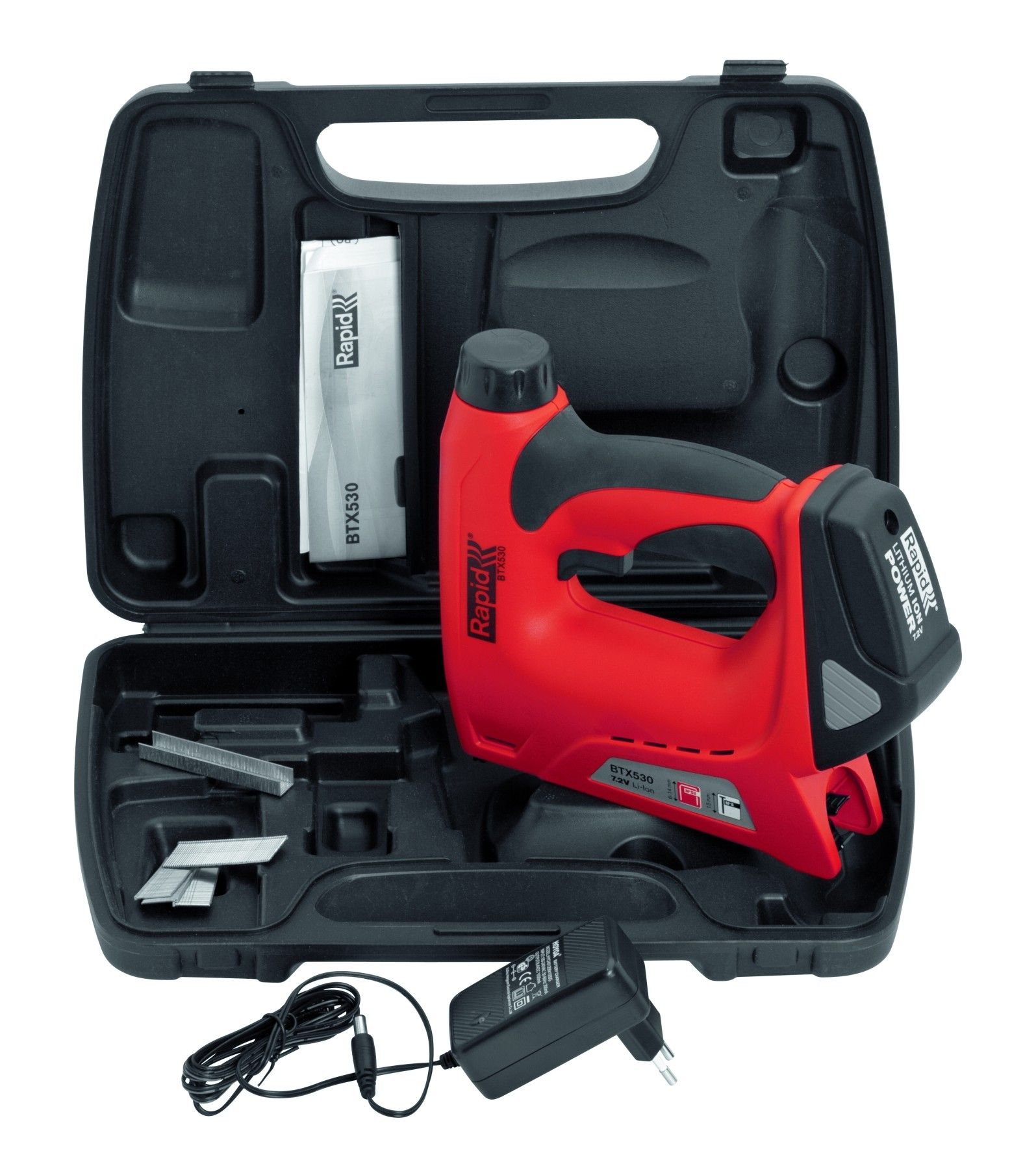 Rapid BTX530 - Agrafeuse-Cloueuse Électrique Sans Fil à Batterie pour Agrafes N°53 & Pointes N°8, 1300 Tirs par Charge, Puissance Réglable, pour Tissus d'Ameublement / Moquette / Textiles (5000128)
