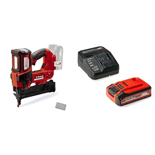 Einhell Agrafeuse sans fil TE-CN 18 Li-Solo Power X-Change (18 V, agrafeuse + cloueuse, incl. 300 clous et 300 agrafes) Livré sans Batterie ni Chargeur