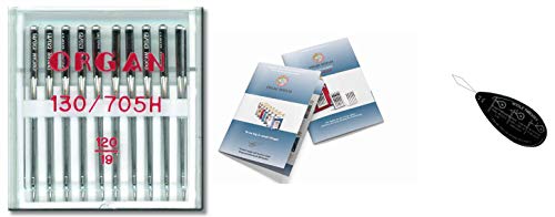 Organ Lot de 10 aiguilles universelles pour machine à coudre domestique (standard) 130 705 H Taille : 120 19 + Enfile-aiguille unique et index Organ Needle - Compatible avec machines Brother, Singer,