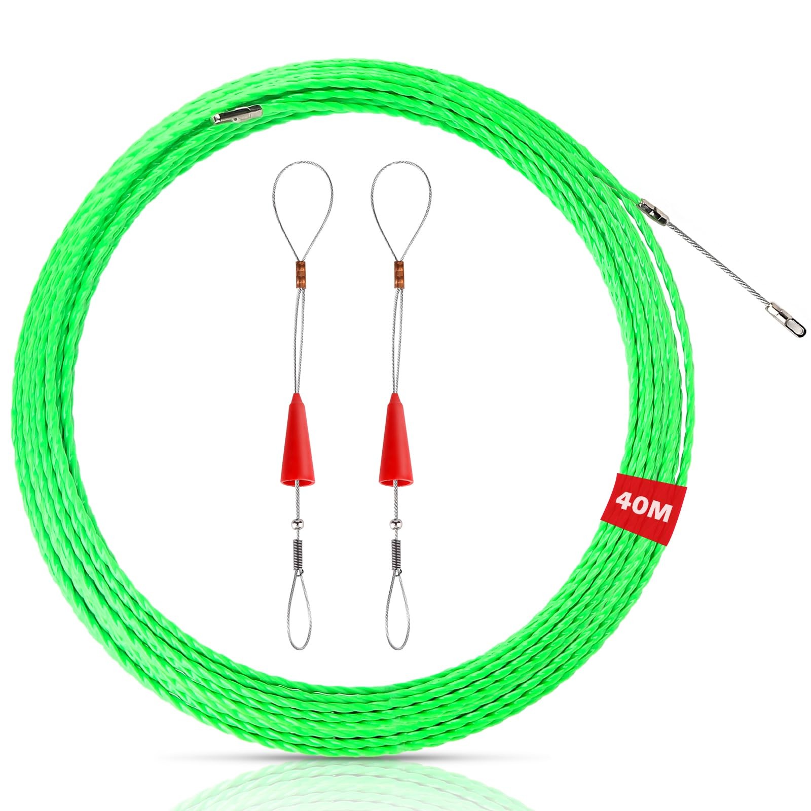 RUNCCI-YUN Aiguille Tire-Fils avec Tête Flexible de Guidage et Oeuillet de Tirage Démontable, électricien Fil Câble Extracteur de Filetage Appareil Fonctionnant Laisses avec Corde en Acier,15M