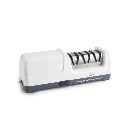 Lacor - 69432 - Aiguiseur de couteaux Drei, électrique 18 W, avec disques diamantés, Pour couteaux en acier et en céramique, Base antidérapante et magnétique, 2800 tr/min, Dimensions 26.5x10.7 cm