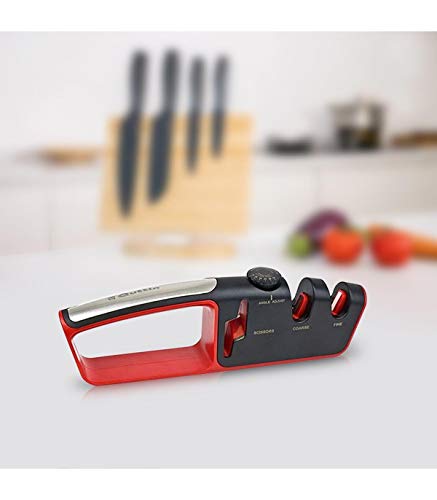 MasterClass Smart Sharp double aiguiseur de couteaux avec 2 couteaux pour aiguiser et affûter les couteaux en acier inoxydable et en céramique, rouge