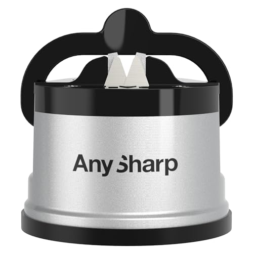 AnySharp Aiguiseur de Couteaux, Sécurité Mains Libres, Ventouse PowerGrip, Aiguise en Toute Sécurité Tous les Couteaux de Cuisine, Idéal pour l'Acier Trempé & Dentelé | Le Meilleur au Monde | Argent