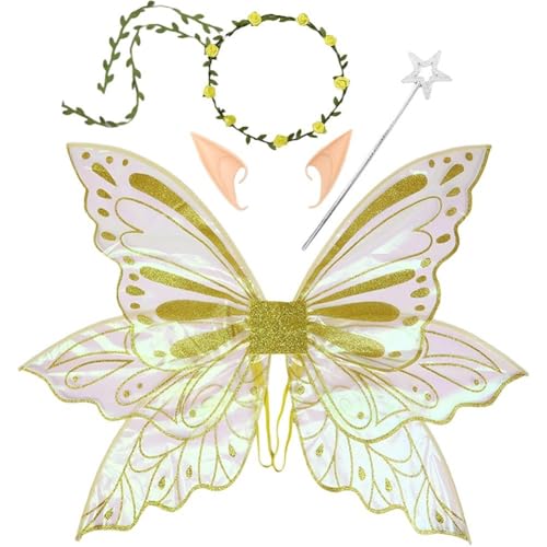 Muteitt Ailes De Fée, Ailes De Papillon avec Oreilles D'elfe, Couronne De Fleurs, Magique Étoilée pour Adultes, Accessoires De Déguisement pour Halloween Carnaval