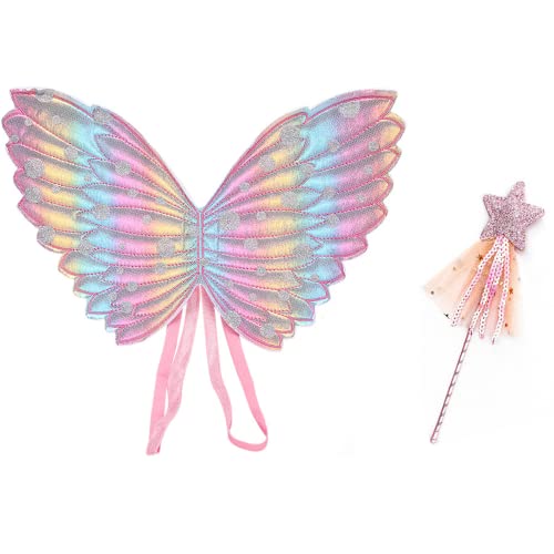 Déguisement Fée Enfant,Ailes d'Enfants 2 Costume Papillon Fille Ailes Ensemble Baguette Magique et Ailes de Fée pour Enfants pour Filles Fête d'halloween Habiller Accessoires de Déguisement Cosplay