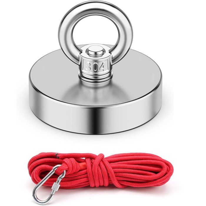 Kit de pêche à laimant 160 kg - Aimant de pêche 60 mm - Corde de 10 m + Mousqueton à vis - Pêche à laimant pour enfants - Cadeau