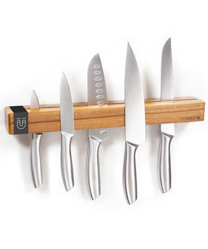 Coninx Barre Magnétique Murale Double Aimant en Bois d’Acacia – 40 cm Porte-Couteaux avec Vis et Chevilles – Rail Aimanté Puissant pour Ustensiles de Cuisine Élégant et Gain de Place