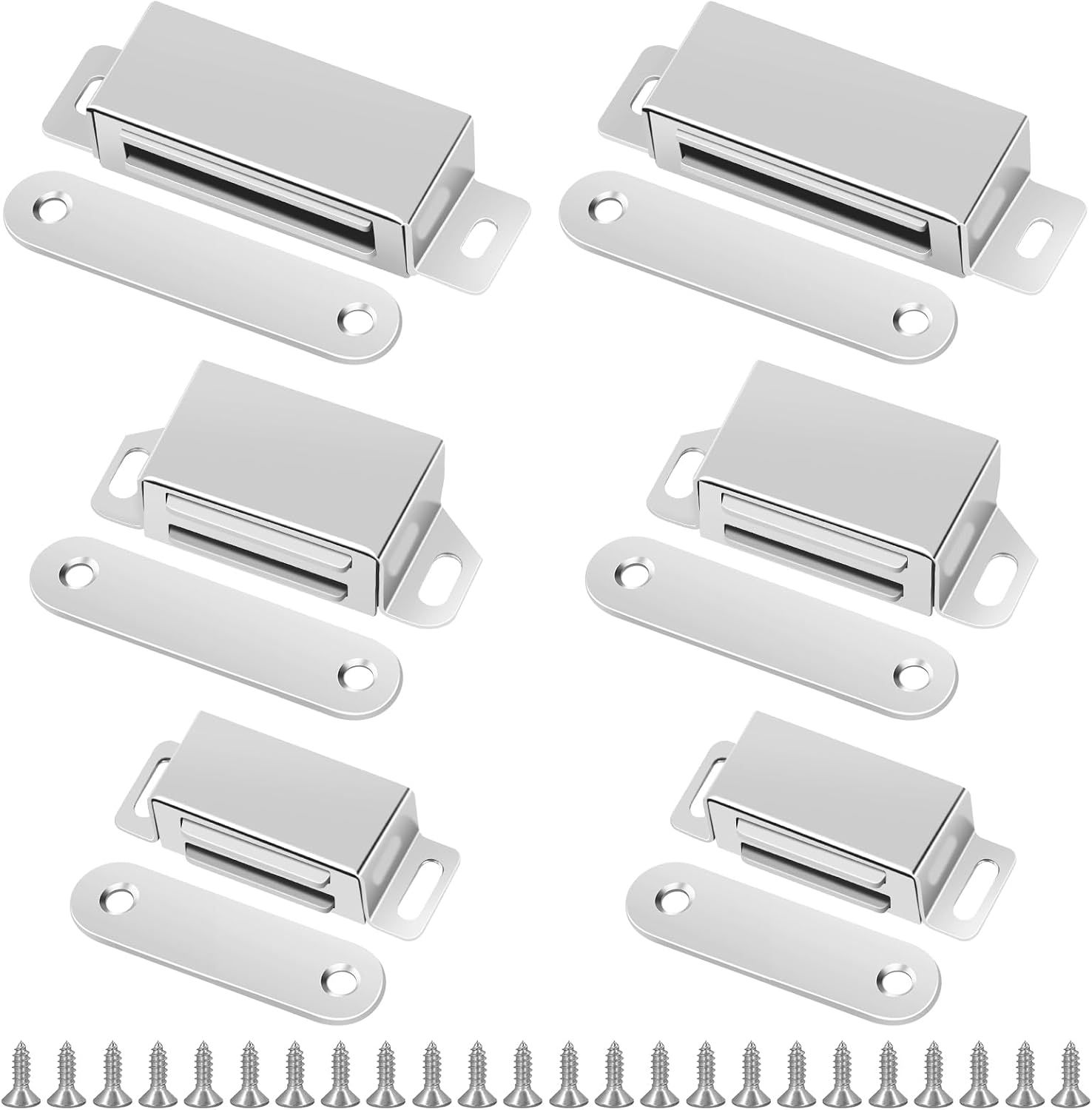 LETNERNY-Lot De 8 Loqueteaux Magnétiques Pour Portes D'Armoire Avec 24 Vis, Aimant De Porte Magnétique Extra Puissant En Acier Inoxydable