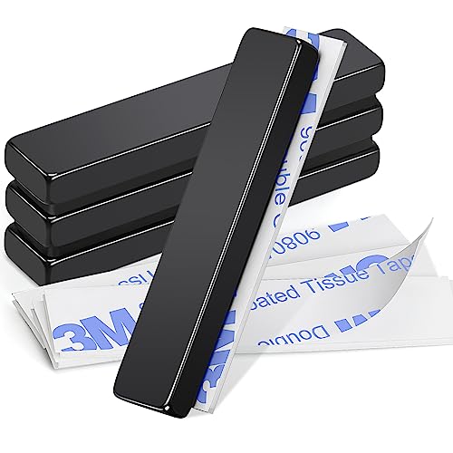 Wukong 4 Pièces Aimant Néodyme Super Puissant, 50×10×5mm Noir Autocollant Rectangulaire Plat pour Salles d'Outils, Entrepôts et Cuisines