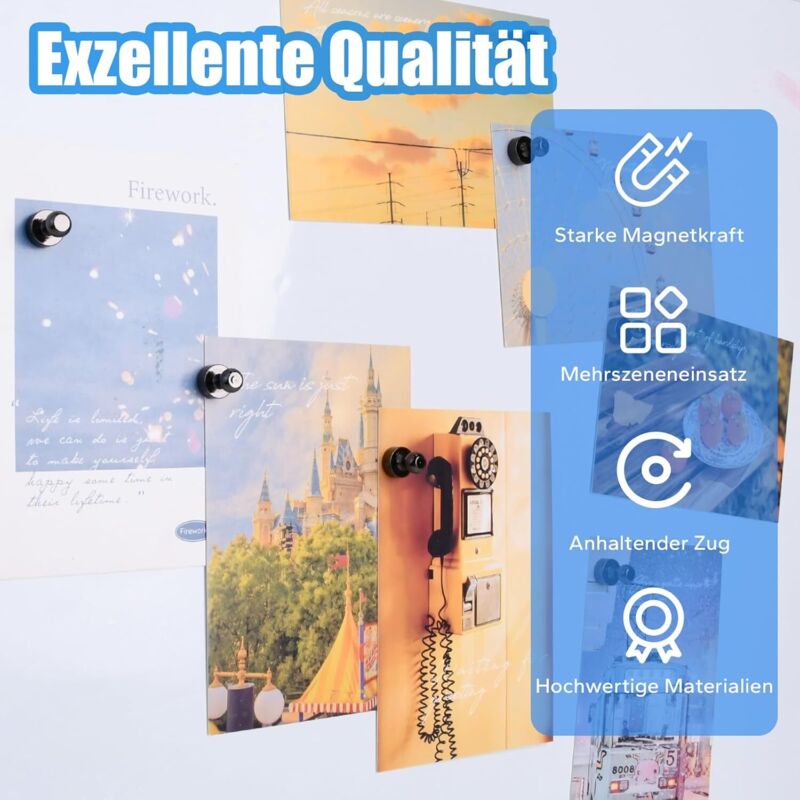 Aimant Neodyme 20 Pièces N52 Super Puissant Punaise Aimants pour Tableau Blanc, Magnétique Réfrigérateur, Tableaux Magnétiques, Plaque Magnétique