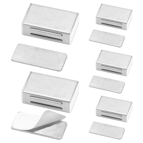 VEGCOO 6 Pcs Aimant Porte Placard sans Perçage, Aimant de Porte en Acier Inoxydable avec Autocollant pour Cuisine Salle de Bains Coulissante