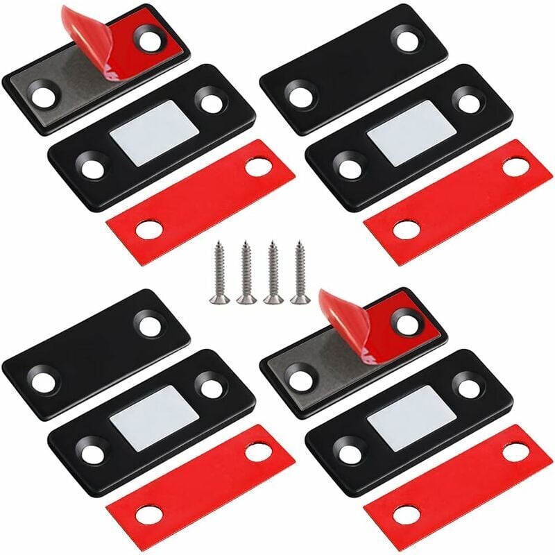 Noir Aimant de Porte Magnétique 4 Pièces Ultra Mince Loquets Magnétiques en Acier Inoxydable pour Porte Coulissante de Placard, de Cuisine, Armoire,