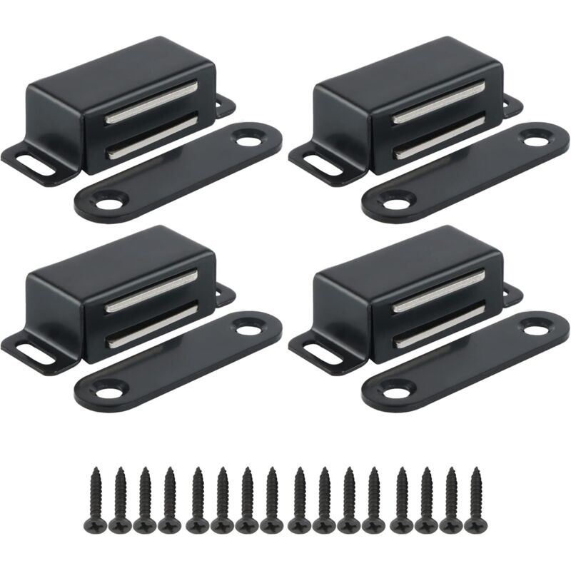 Romon Aimant Porte Placard, 4 Pièces Ultra Mince Loqueteaux Magnétiques Puissant Aimant de Porte Placard Cuisine Loquet Magnétique Vis Aimant Meuble Fermeture pour Tiroir, Armoire Coulissant, Noir