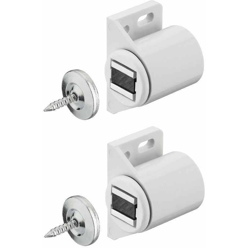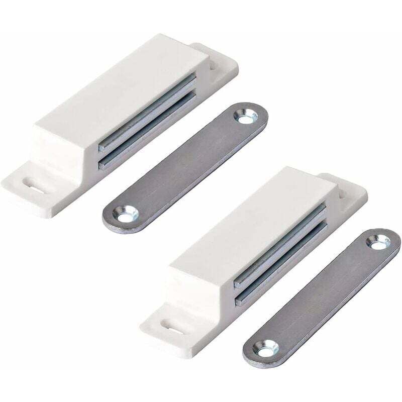 Metafranc Lot de 2 loqueteaux magnétiques blancs - Force de maintien de 3 kg - Contre-plaque fixe - Montage facile - Convient pour portes de meubles et rabats / fermeture de porte / aimant de maintien / loquet de meubles / 350066