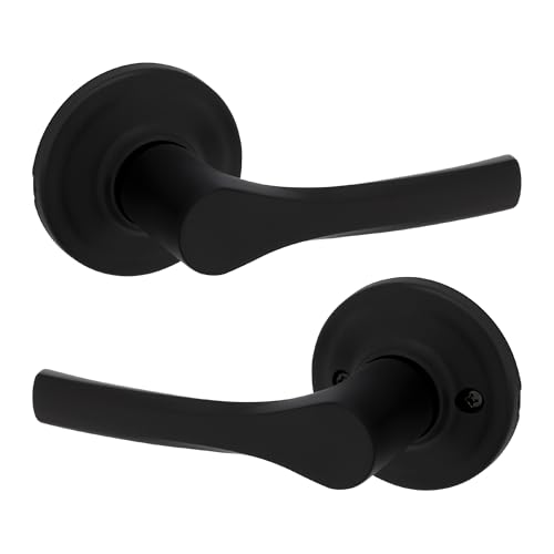 Kwikset Mirada Poignée de porte intérieure à roseaux, levier pour portes de placard et de couloir, levier réversible non verrouillable, noir mat, avec protection Microban