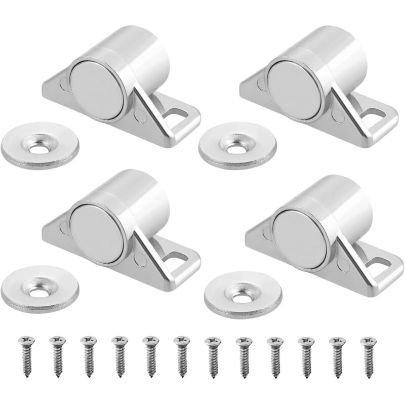 ASelected Lot de 4 loquets magnétiques pour portes d'armoires, en acier inoxydable, très résistants, pour porte, tiroir, placard, 48 kg, argenté