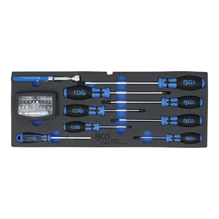 BGS 3343 | Insert pour art. 3312 : Tournevis, jeu d’embouts et aimant de levage | 41 pièces