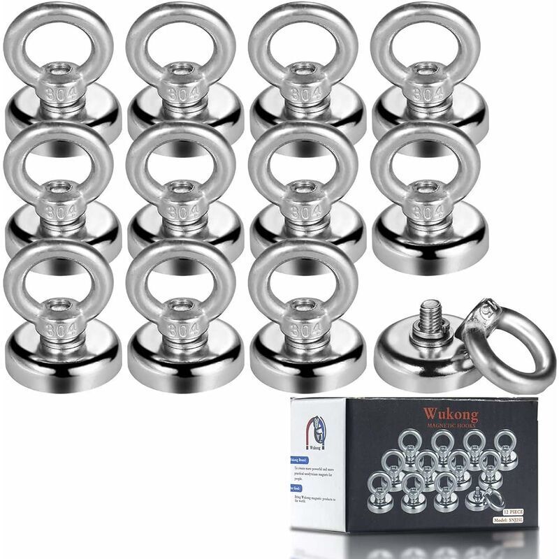 Crochet Magnetiques, 25mm Aimant Puissant 19kg Force De Traction Aimant Puissant Rond Magnétique Néodyme (12 Packs)
